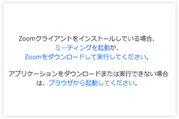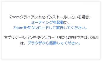 ダウンロード開始画面の「アプリケーションをダウンロードまたは実行できない場合はブラウザから参加」の参加をクリックする。